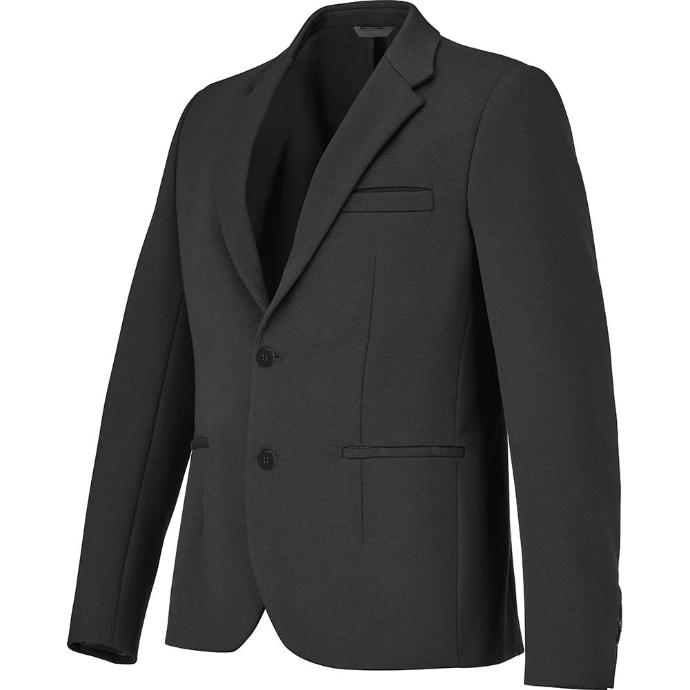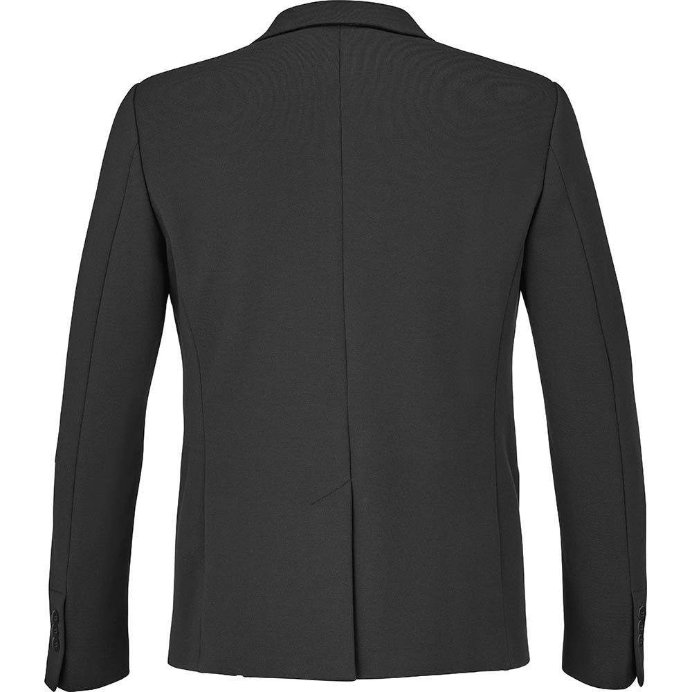 Mit Falten im Schritt gefüttert | 1 paspelierte Brusttasche | 1 geknöpfte, paspelierte Innentasche links | Seitliche Cut-outs + Taillenabnäher | Verschluss mit 2 Knöpfen | Schlitz am Ärmelsaum + 3 Knöpfe | Rückenschlitz