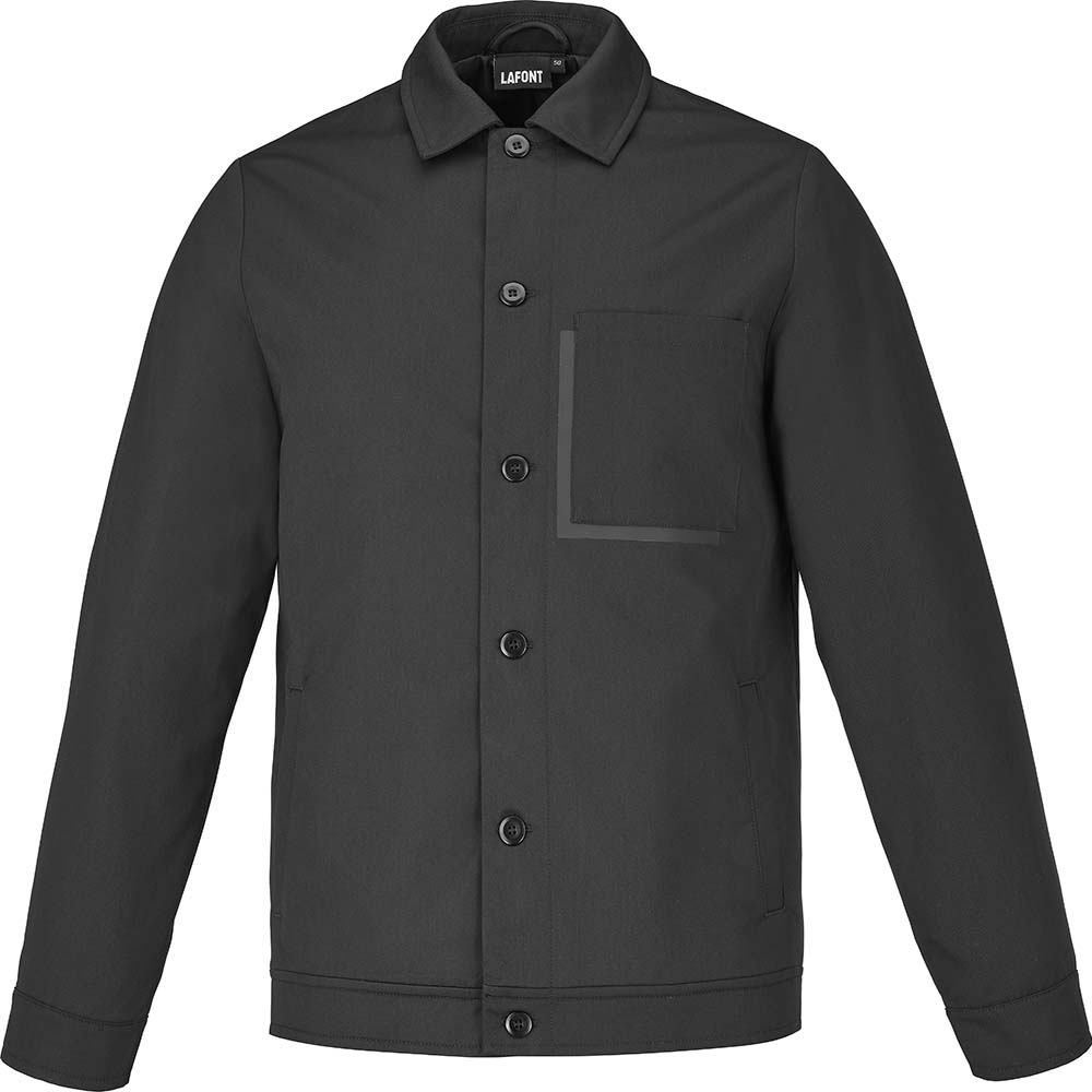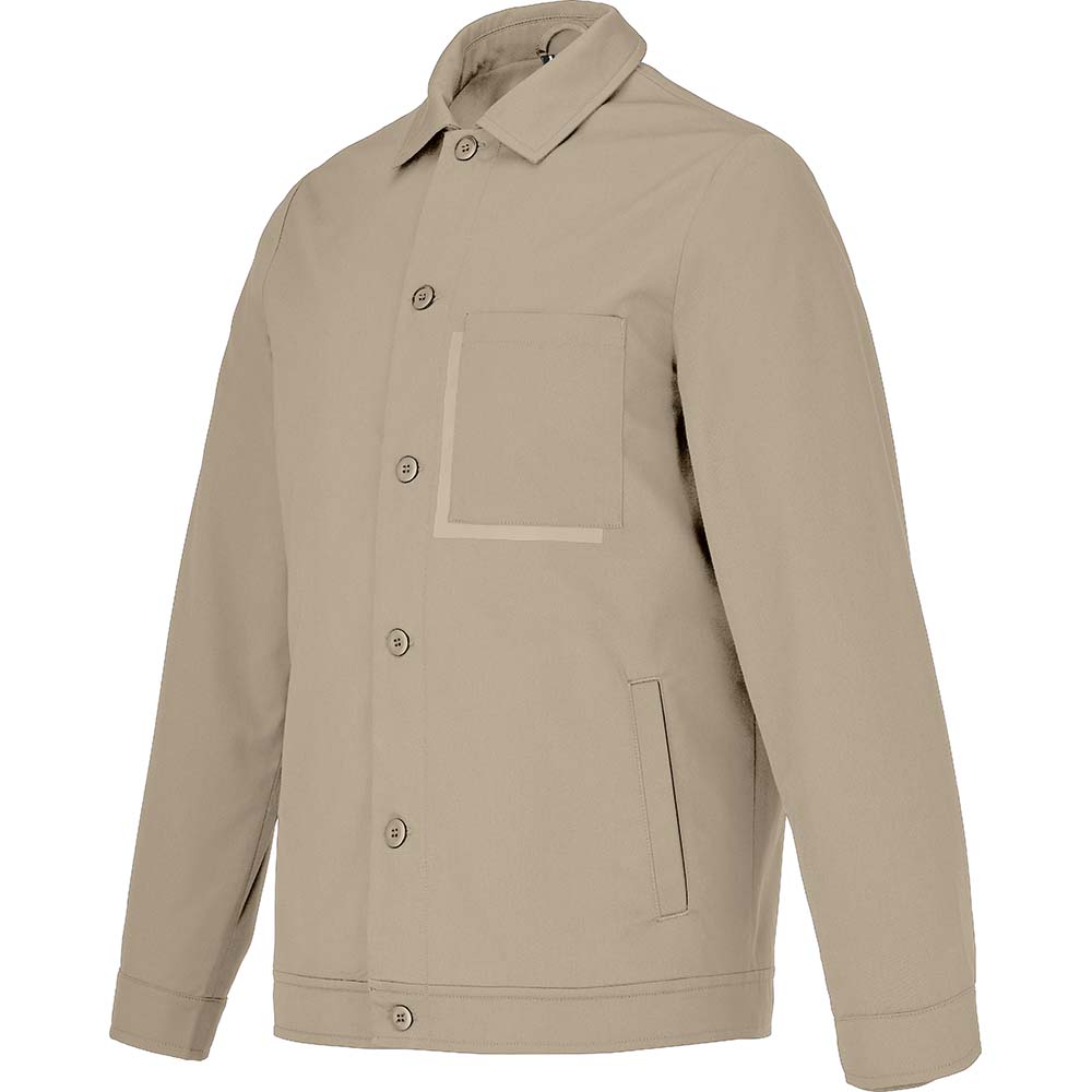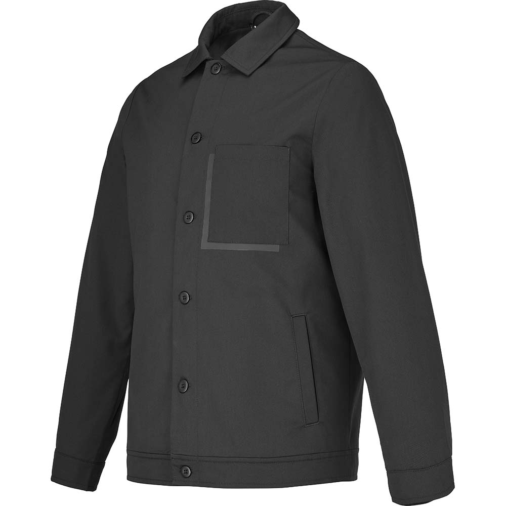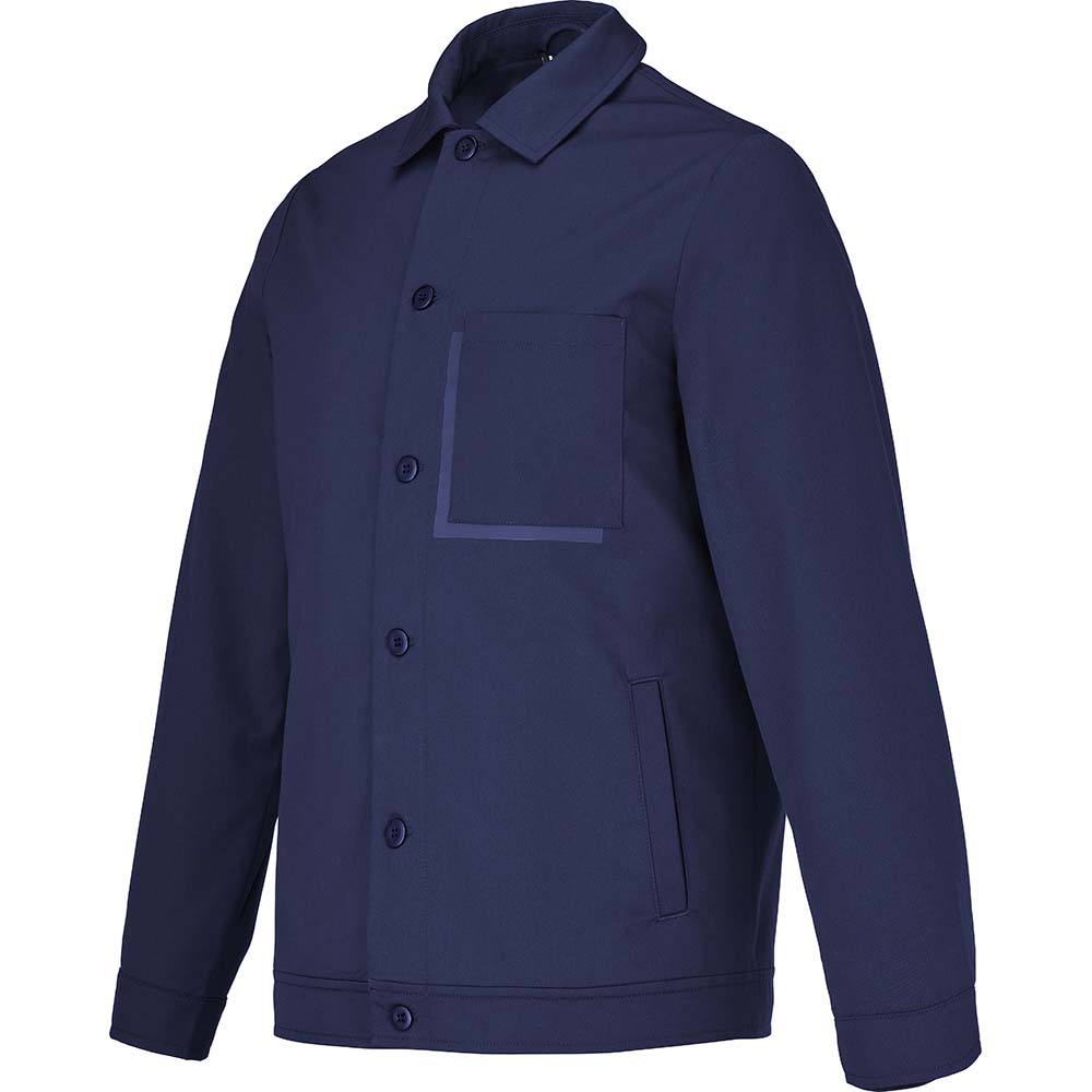 Kragen mit Kragensteg | 1 aufgesetzte Tasche mit Ton-in-Ton-Transferdetail | 2 Innentaschen | Knopfleiste vorne mittig | 2 Leistentaschen unten | Rückenpasse | Ärmelbündchen mit 1 Falte und 1 Schlitz