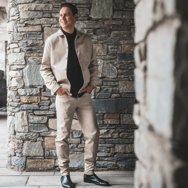Herrenjacke mit auffälliger Knopfleiste und umgeklapptem Kragen, ideal für einen lässig schicken Stil. Sie ist mit einer Brusttasche mit Zierelement ausgestattet, die Ihrer Jacke Struktur verleiht, sowie mit Paspeltaschen vorne, die für einen Touch Raffinesse sorgen. Die Jacke ist gefüttert und verfügt über eine Handytasche, die für Komfort und Funktionalität sorgt. Sie lässt sich perfekt mit der Hose BALARD tragen.