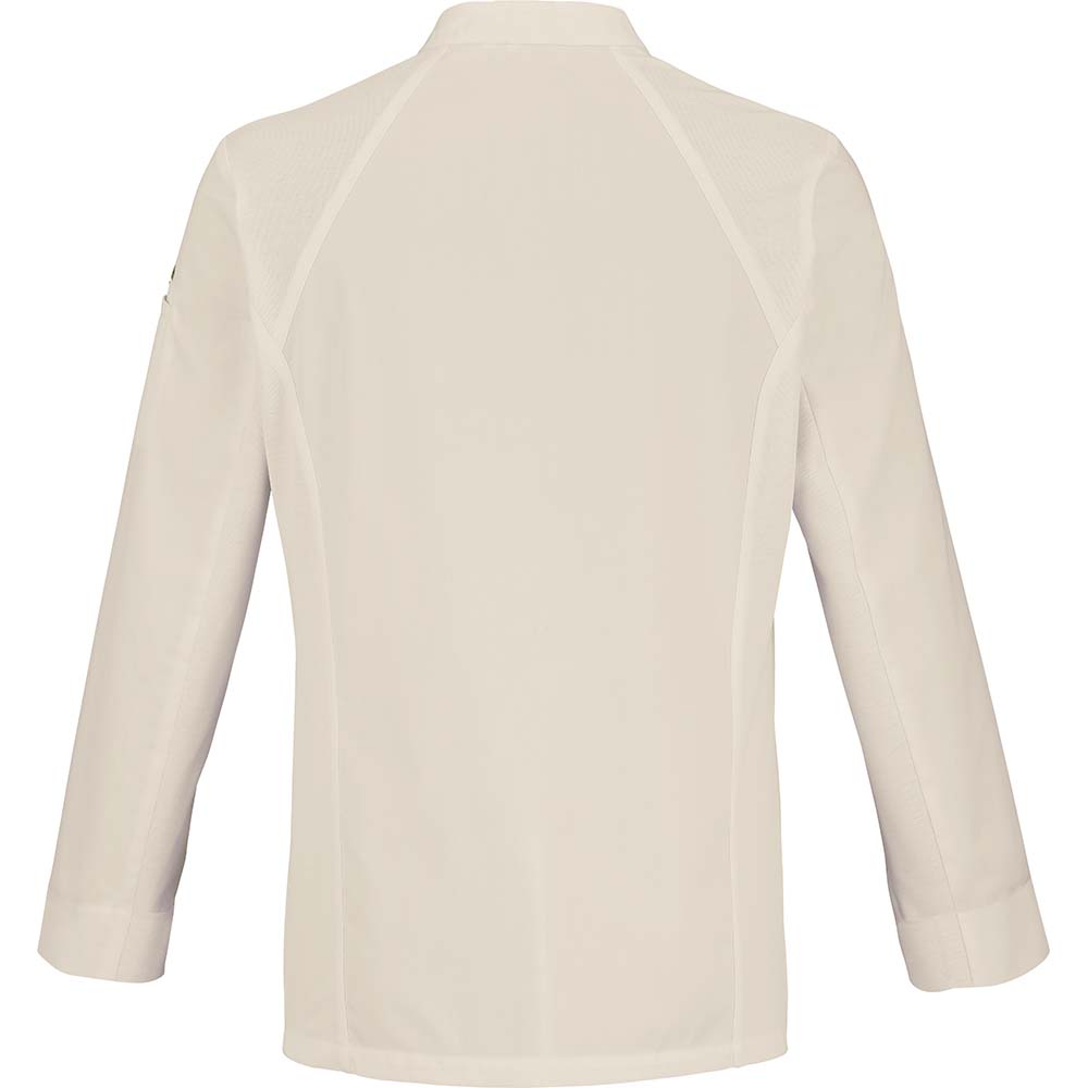 Praktische Details – Eine Paspeltasche am linken Ärmel ermöglicht schnellen Zugriff auf Stift, Thermometer oder kleine Küchenutensilien.