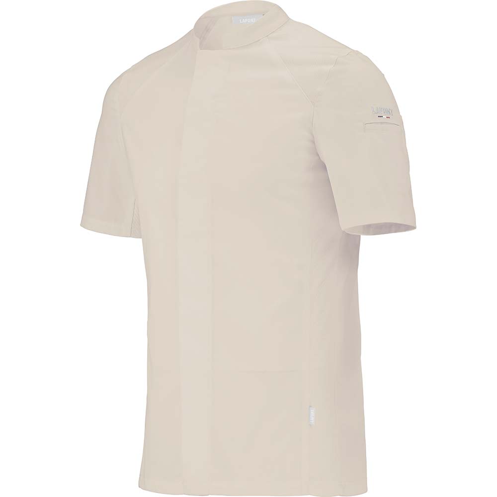 + Produktbonus: Atmungsaktiv & Stretch & LeichtStehkragen | Strickpasse | Frontverschluss mit verdeckten Druckknöpfen | Paspeltasche am linken Ärmel | 5 cm ÄrmelsaumWarum die BASIL2 überzeugt:Bewegungsfreiheit Deluxe – Dank elastischer Strick-/Mesh-Einsätze im Schulter- und Seitenbereich bietet die BASIL2 maximale Flexibilität bei jeder Position am Herd. Sauberer, moderner Auftritt – Der verdeckte Druckknopfverschluss vorne verleiht ein ruhiges, professionelles Erscheinungsbild und ermöglicht schnelles An- und Ausziehen. Funktion trifft Komfort – Der Stehkragen (Offizierskragen) sorgt für eine klare Linienführung, während die hochwertige Twill- und Piqué-Strick-Materialkombination optimalen Tragekomfort bietet (50 % Baumwolle / 50 % Polyester für das Twill-Hauptgewebe, 80 % Polyester / 20 % Baumwolle für das Strickmaterial). Praktische Details – Eine Paspeltasche am linken Ärmel ermöglicht schnellen Zugriff auf Stift, Thermometer oder kleine Küchenutensilien. Atmungsaktivität & Belastbarkeit – Die Kombination aus dem Hauptmaterial und den Netz-/Strickzonen sorgt dafür, dass Sie auch bei Hochbetrieb einen kühlen Kopf behalten und die Jacke dauerhaft stabil bleibt. Optimiert für den Gastronomie-Alltag – Pflegeleicht, robust und formbeständig – geeignet für den täglichen Einsatz. Stil & Farbwahl:Erhältlich in klassischen Farben wie Weiß, Schwarz oder Beige – passend zur Markenästhetik von LAFONT. Der Schnitt für Herren ist auf eine aktive Arbeitshaltung ausgelegt und verbindet Komfort mit klarer Ästhetik.