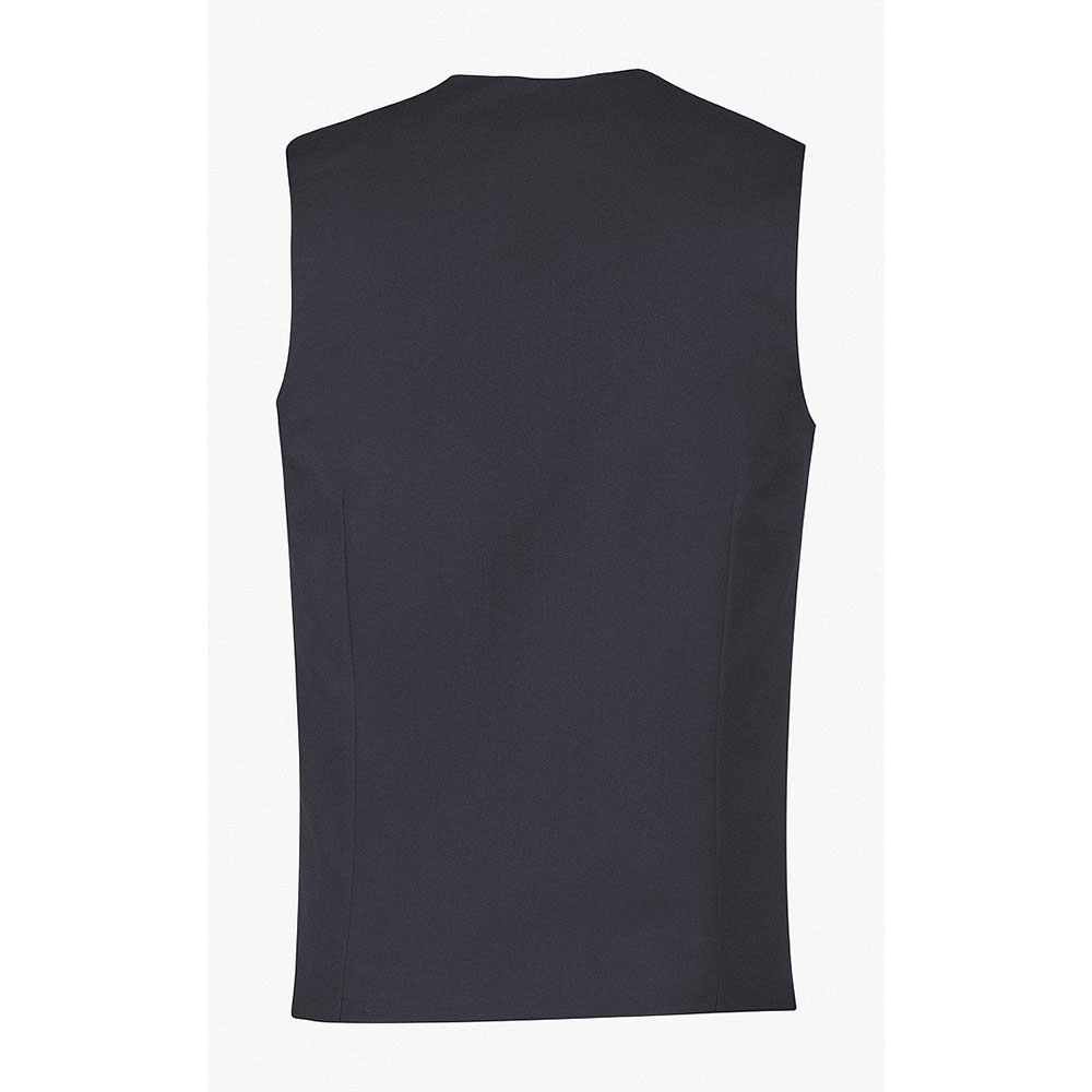 Das klassische Design wird durch eine Knopfleiste, zwei Paspeltaschen sowie eine Brusttasche auf der rechten Seite unterstrichen. Erhältlich in Schwarz, Marineblau und Anthrazitgrau, lässt sich die ärmellose Weste ideal mit einem weißen Hemd und einer Anzugshose kombinieren – für einen souveränen und gepflegten Auftritt im Restaurant oder Hotel.