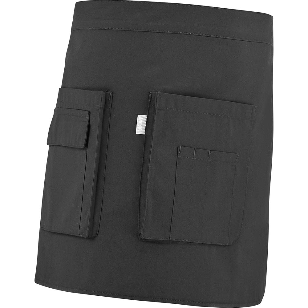 Kurze Schürze mit vielen Taschen, ideal für Küchen- und Servierpersonal, da sie eine optimale