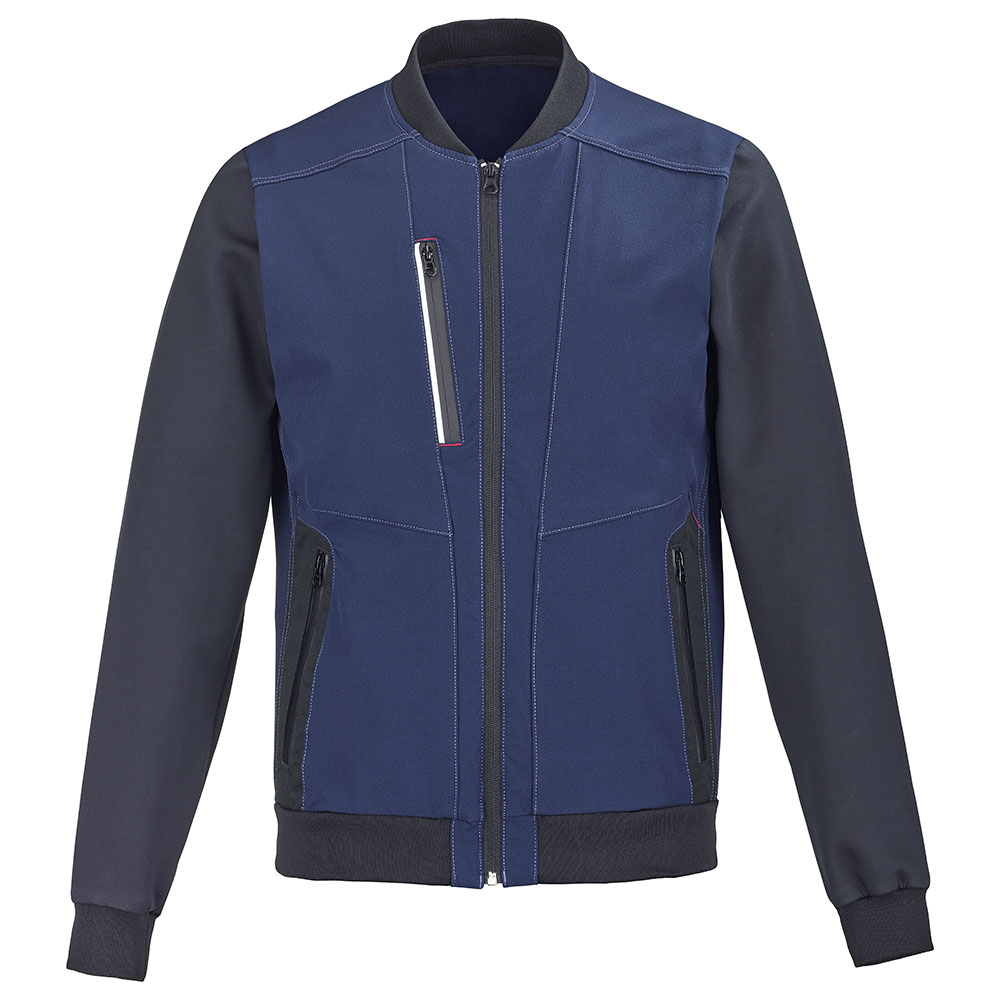 Die Bomberjacke MOW im Sportwear-Stil vereint Funktionalität, Design und Leistungsfähigkeit. Die Kombination aus Strickgewebe und Stretch-Stoff sorgt für einen modernen Look und gewährleistet gleichzeitig die wichtigsten Eigenschaften einer Arbeitsjacke. Das Bi-Stretch-Gewebe, das mehrheitlich aus Polyamid besteht, vereint ein leichtes Gewicht und hohe Leistungsfähigkeit. Eine 5-mal höhere Reißfestigkeit als herkömmlicher 300 g-Stoff. Das Strickgewebe, überwiegend aus Polyester, sorgt für Strapazierfähigkeit und Komfort. Die Rippstrickabschlüsse sorgen für mehr Tragekomfort und die retroreflektierenden Streifen für mehr Sichtbarkeit.