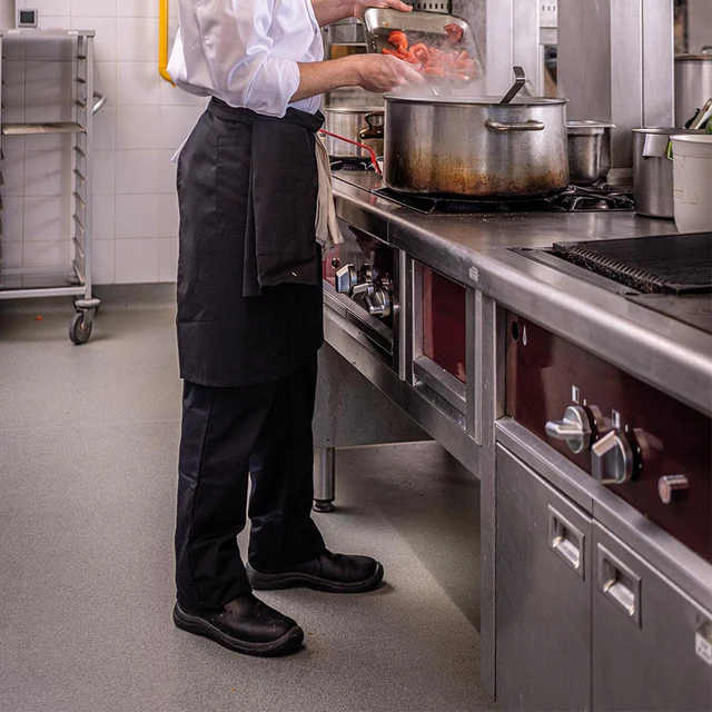 Die RÉGLISSE Kochhose ist ein sehr bequemes und vielseitiges Arbeitskleidungsstück. Sie ist vorgesehen für Herren und Damen, die praktische und angenehm zu tragende Kochkleidung suchen. Die Kochhose RÉGLISSE hat zwei Taschen und einen Kordelbund sowie einen elastischen Bund, der ausgezeichnete Bewegungsfreiheit bietet. Zur Anpassung dieser Unisex-Hose an die entsprechende Körpergröße kann man die Beinlänge ebenfalls durch innenliegende Gripper verstellen. Sie besteht aus einem bequemen und pflegeleichten Gewebe aus 65 % Polyester und 35 % Baumwolle (210 g) und ist bei 60 °C maschinenwaschbar. Zur Kombinierung mit Ihrer Kochjacke oder den Farben Ihres Restaurants wird diese Lafont-Arbeitshose in verschiedenen Farben angeboten.