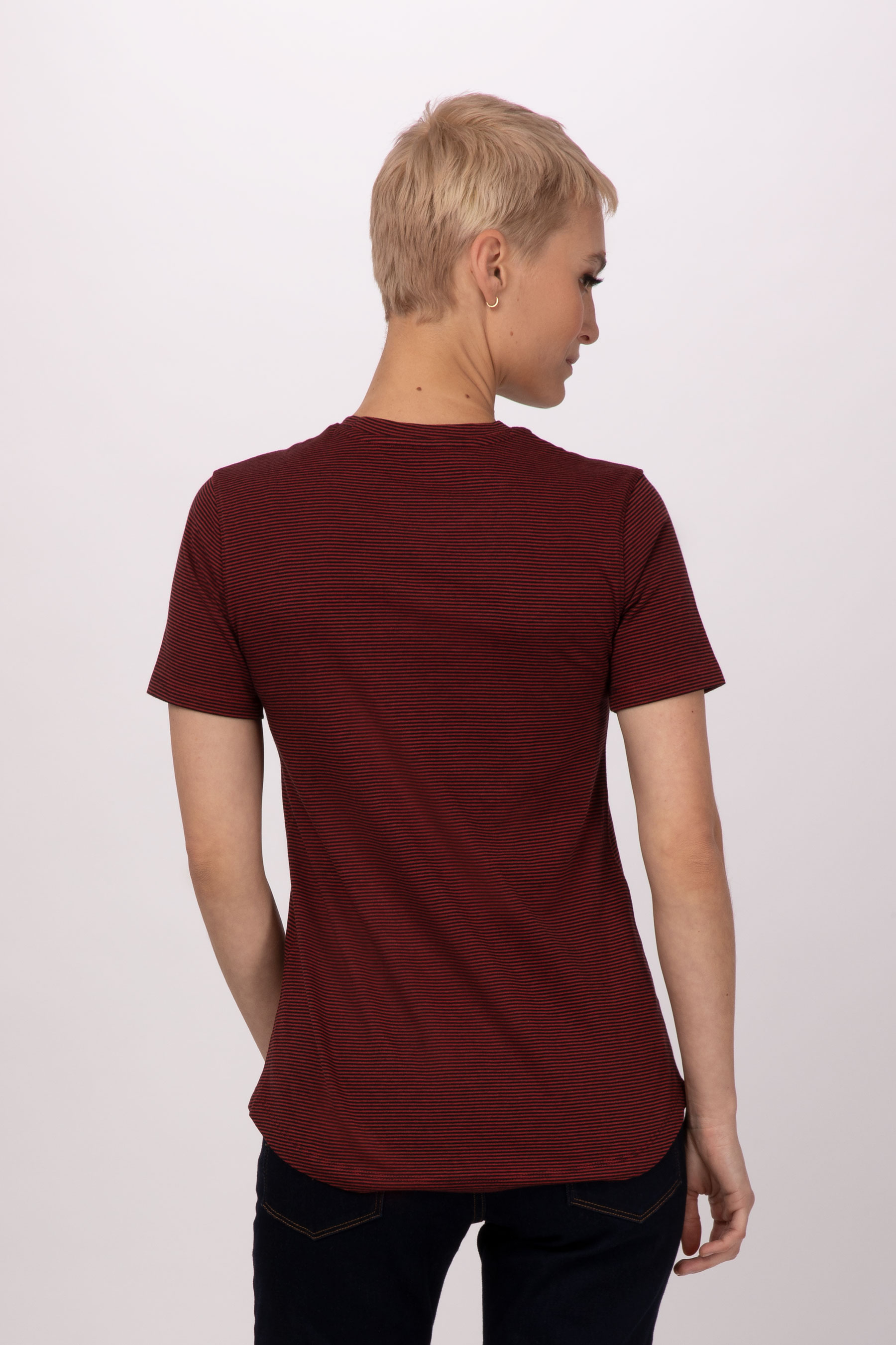 Das gestreifte Damen-T-Shirt eignet sich sowohl vor als auch hinter den Kulissen. Kombiniert dazu unsere neue Urban Schürzenkollektion und perfektioniert so Euren neuen Look. Das Shirt gibt es in 5 coolen Farben, fühlt sich weich und soft an, sozusagen ein Wohlfühlteil. Durch den abgerundeten Saum lässt sich das Shirt auch lässig über der Hose tragen.