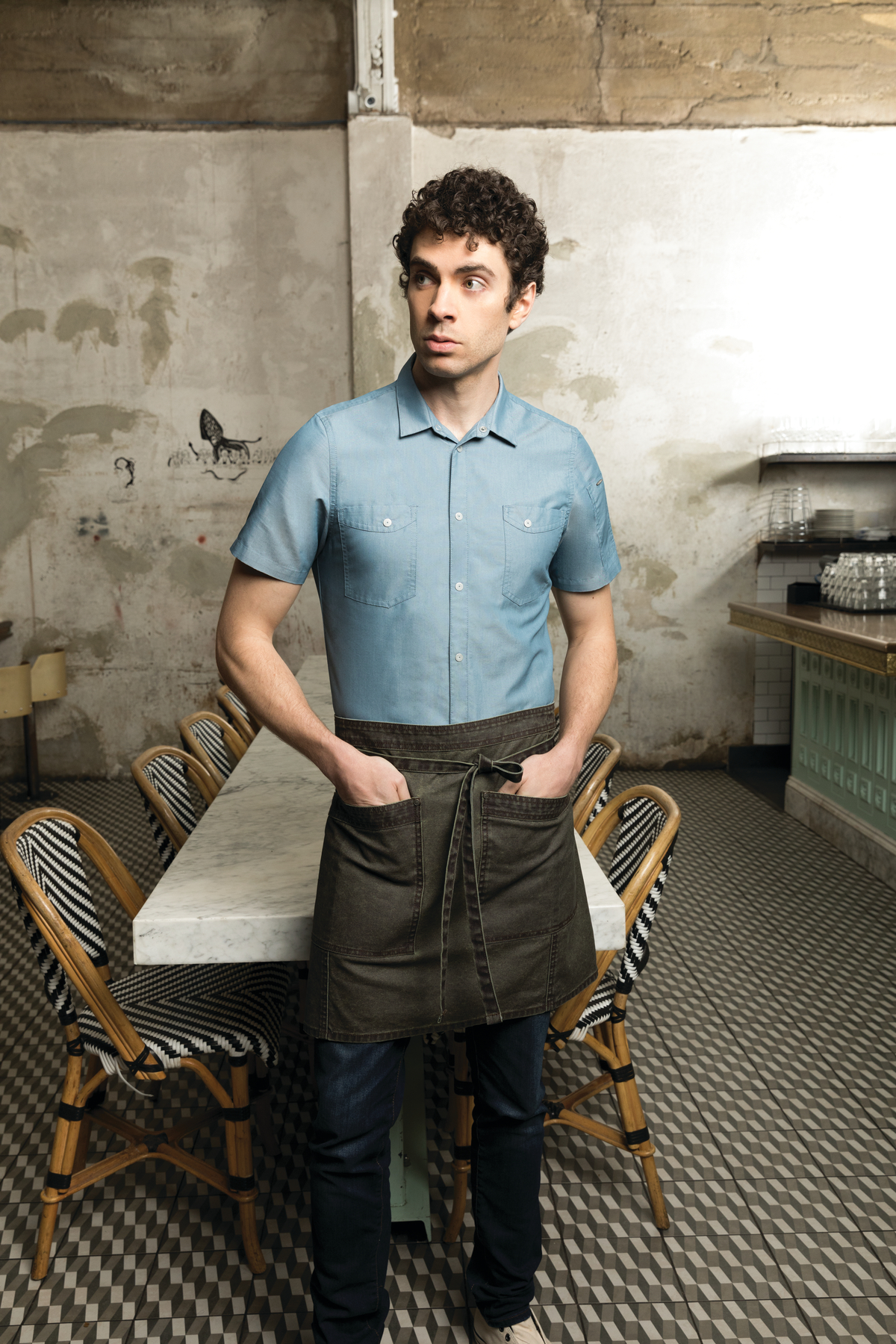 - Latzschürzenhalter im Nacken mit Druckknopf
