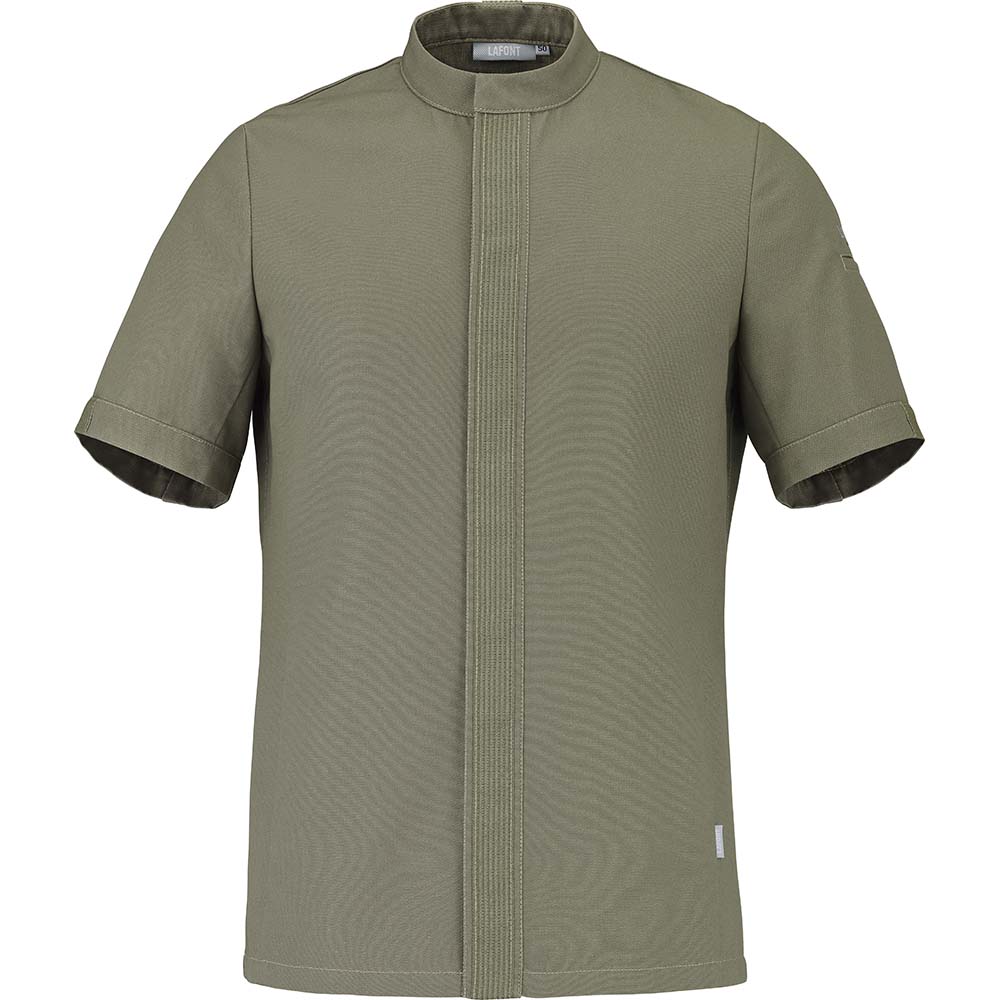 #Positive ImpactOffizierskragen | Paspeltasche am linken Ärmel | Zierborte vorne mittig. Vorne mit verdeckten Druckknöpfen geschlossen | Rückenlasche aus Zierborte mit Druckknopfverschluss zum Fixieren der Schürze | Musketiermanschette innen geknöpft | RückenschlitzeKochjacke GOMBO – modern, nachhaltig und im TrendDie Herren-Kochjacke GOMBO verbindet klassisches Handwerk mit modernem Stil und nachhaltiger Materialwahl. Sie ist die perfekte Wahl für Köche, die Wert auf Komfort, Funktionalität und ein gepflegtes Erscheinungsbild legen.Ein besonderes Detail ist die feine Borte auf der verdeckten Knopfleiste, die der Jacke eine dezente, elegante Note verleiht. Die Manschettenärmel sorgen für eine saubere Silhouette, während die praktische Schlaufe am Nacken das Befestigen der Schürze erleichtert – so bleibt sie auch während eines langen Arbeitstages stets perfekt an Ort und Stelle.Das hochwertige Mischgewebe besteht teilweise aus recyceltem Polyester und vereint Strapazierfähigkeit, Atmungsaktivität und Tragekomfort mit einem klaren Bekenntnis zu mehr Nachhaltigkeit.Erhältlich in den trendigen Farben Marineblau, Khaki und Natur, bringt die GOMBO frischen Stil in jede Küche. Sie lässt sich ideal mit weiteren LAFONT Artikeln wie Kochhosen, Schürzen oder Kopfbedeckungen kombinieren – für ein rundum stimmiges, modernes Erscheinungsbild Ihres Teams.Mit der Kochjacke GOMBO entscheiden Sie sich für Qualität, Umweltbewusstsein und zeitgemäßes Design – perfekt für Profis, die in jeder Hinsicht überzeugen möchten.
