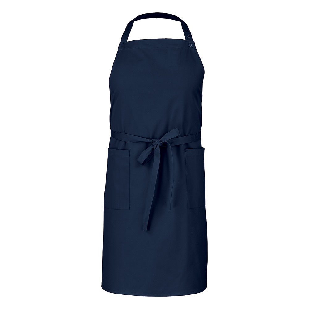 #Positive Impact2 aufgesetzte Taschen • Verstellbarer Kragen mit Druckknöpfen • Taillenbänder • Taillenweite: 84 cm • Saumweite: 92 cm • Gesamthöhe: 90 cmDiese Latzschürze als Positive Impact Version ist ein praktisches und funktionales Kleidungsstück für die Küche. Sie verfügt über ein verstellbares Nackenband und zwei aufgesetzte Taschen, in denen berufliches Zubehör oder persönlichen Gegenstände immer bei sich getragen werden können. Die GALANGA Kochschürze hat außerdem einen Taillenbund, der eine Anpassung an alle Körperformen ermöglicht. Diese geschmeidige professionelle Küchenschürze aus 50% recyceltes Polyester und 50% Baumwolle ist widerstandsfähig gegen mehrmaliges Waschen. Höhe 90cm - Breite 84 cm.