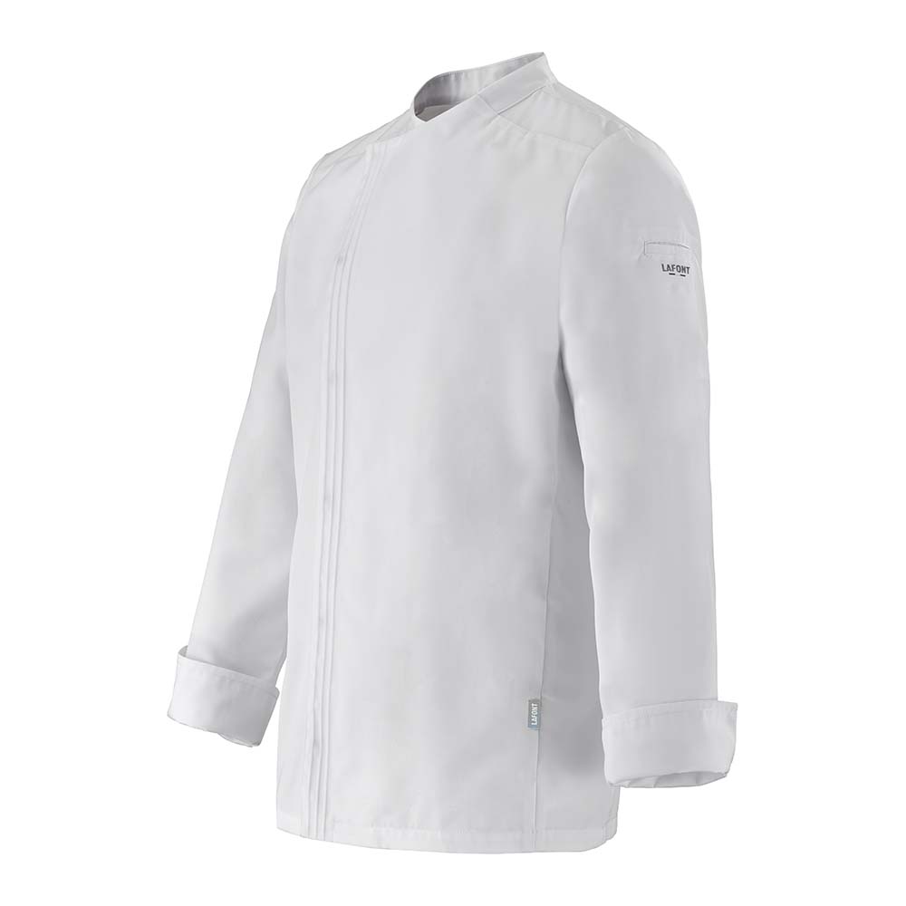 #Positive ImpactAchselpasse aus Mesh. Passend zur Jacke zugeschnitten. Ärmelbündchen mit Schlitz. Drei Abnäher vorne. Rückeneinsatz aus Mesh. 6 mm hohe, gefaltete Borte. Ausschnitt entlang der Ellbogennaht. Überlappender Schlitz. Rückenschlitz.Michelin-Star Kochjacke – Eleganz & Performance für echte ProfisDie Damen Kochjacke TITANE PI bietet eine perfekte Kombination aus stilvollem Design, funktionaler Ausstattung und maximalem Komfort. Speziell für die Anforderungen der modernen Gastronomie entwickelt, überzeugt sie durch ihren femininen, leicht taillierten Schnitt, der optimale Bewegungsfreiheit garantiert – selbst im hektischen Küchenalltag.Mit ihrem klaren, modernen Look, einem komfortablen Stehkragen und einer dezenten Knopfleiste präsentiert sich die TITANE PI als elegante Berufskleidung für Köchinnen, die Wert auf ein professionelles Erscheinungsbild legen. Hochwertige Verarbeitung, fein gearbeitete Nähte und praktische Details wie ergonomische Ärmel, seitliche Schlitze und funktionale Taschenlösungen machen diese Jacke zu einem zuverlässigen Begleiter in jeder Situation.Ob im à-la-carte-Bereich, in der Gourmetküche oder im Catering – die TITANE PI verbindet Stil, Qualität und Komfort auf höchstem Niveau und lässt professionelle Köchinnen stets souverän aussehen.TITANE PI – für Frauen, die ihre Leidenschaft für die Küche mit Eleganz und perfekter Funktion verbinden.