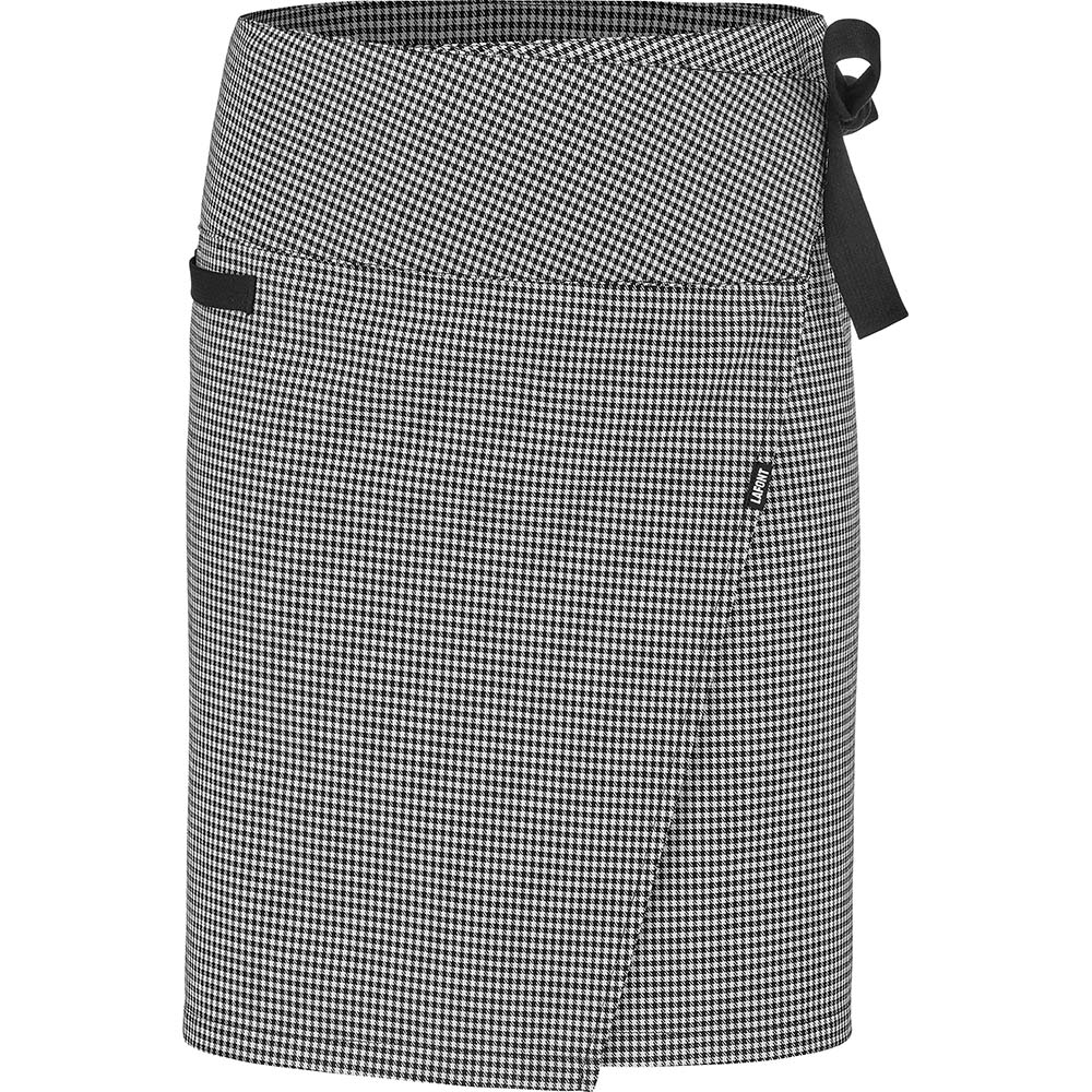 Knopflöcher zum Einfädeln des Bandes | Tasche in Aussparung | Kontrastband | Halterung für Geschirrtuch | 2 GrößenSchürze in Wickeloptik im Bistro-Stil, mit raffiniertem Muster, entwickelt für Beschäftigte in Küche und Gastronomie. Sie ist mit einer Geschirrtuchhalterung sowie einer funktionalen Tasche ausgestattet, die im Alltag sehr praktisch sind. Sie ist in zwei Größen erhältlich und ihr Taillenumfang ist verstellbar. Höhe 55 cm.Hahnentritt 240 GR/M² - Graphitgrau 260 GR/M² - Schwarz / Beige 300 GR/M²