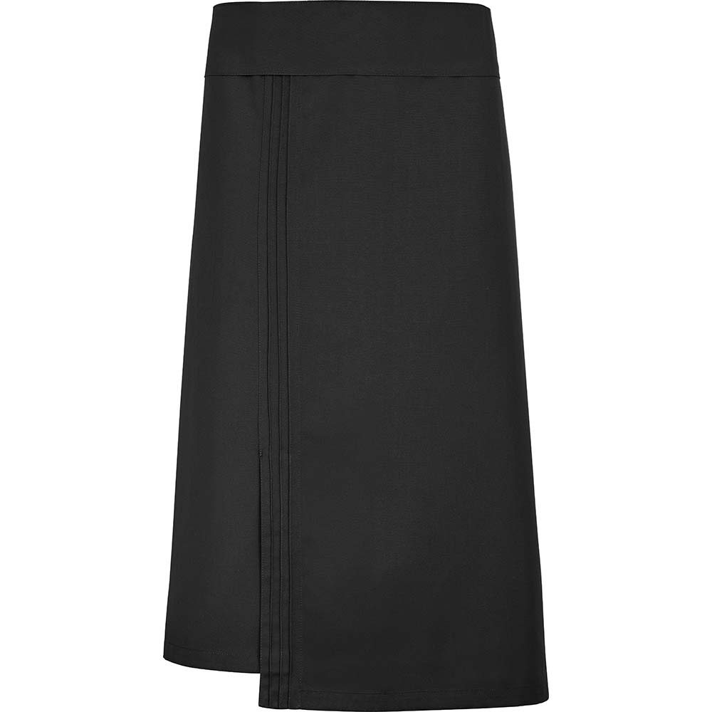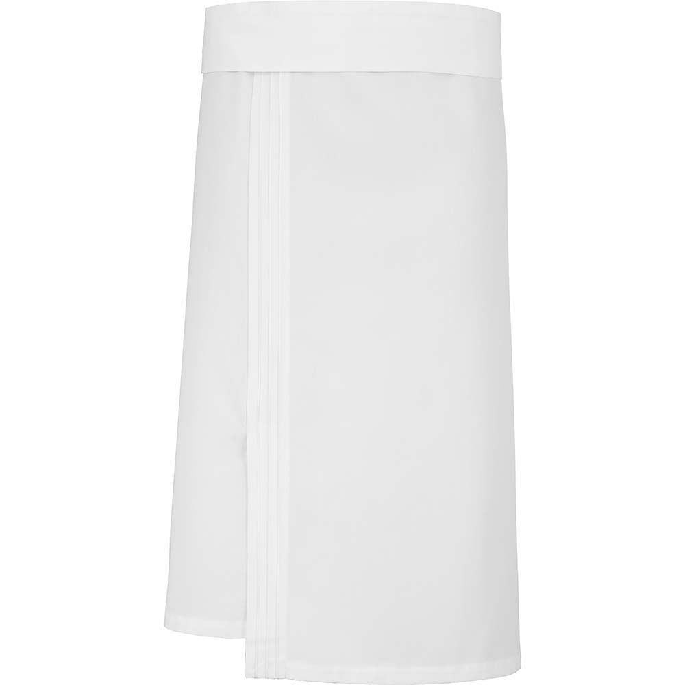 Knopflöcher zum Einfädeln des Bandes | Tasche in Aussparung | Kontrastband | Halterung für Geschirrtuch | 2 GrößenSchürze in Wickeloptik im Bistro-Stil, mit raffiniertem Muster, entwickelt für Beschäftigte in Küche und Gastronomie. Sie ist mit einer Geschirrtuchhalterung sowie einer funktionalen Tasche ausgestattet, die im Alltag sehr praktisch sind. Sie ist in zwei Größen erhältlich und ihr Taillenumfang ist verstellbar. Höhe 55 cm.