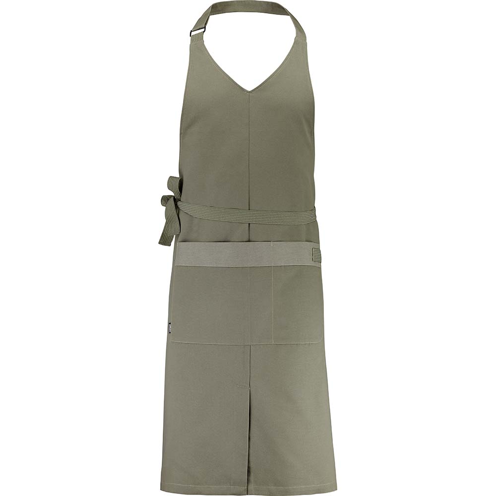 #Positive ImpactKontrastfarbener Taschenrand | Kragen mit verstellbarer Metallschnalle | Kordel zum Knoten | Halterung für Geschirrtuch aus Kordel | Aufgesetzte Mitteltasche mit zwei Fächern | Mittiger Frontschlitz | Länge 109 cm Breite 93 cmSchürze mit V-Ausschnitt, hergestellt aus Recyclingmaterial, vereint Beständigkeit mit ökologischer Verantwortung. Die Schürze lässt sich dank des mithilfe einer Schnalle verstellbaren Halsumfangs perfekt anpassen und verfügt über eine unterteilte Tasche mit Geschirrtuchhalterung in der Mitte sowie einen Schlitz unten vorne, der für große Bewegungsfreiheit sorgt. Ideal für alle Vertreter der Gastronomie, die ihre Umweltauswirkungen verringern und gleichzeitig im Alltag eine funktionale und bequeme Kleidung genießen möchten.