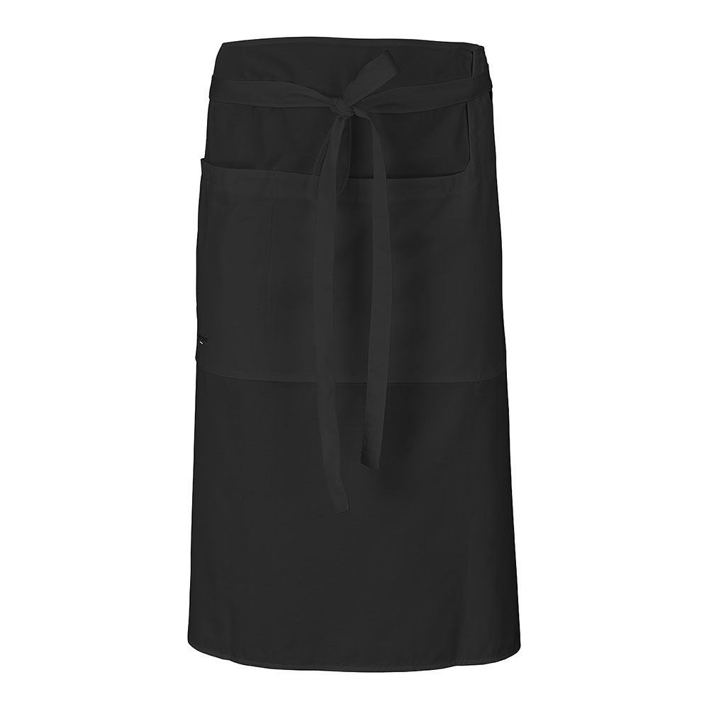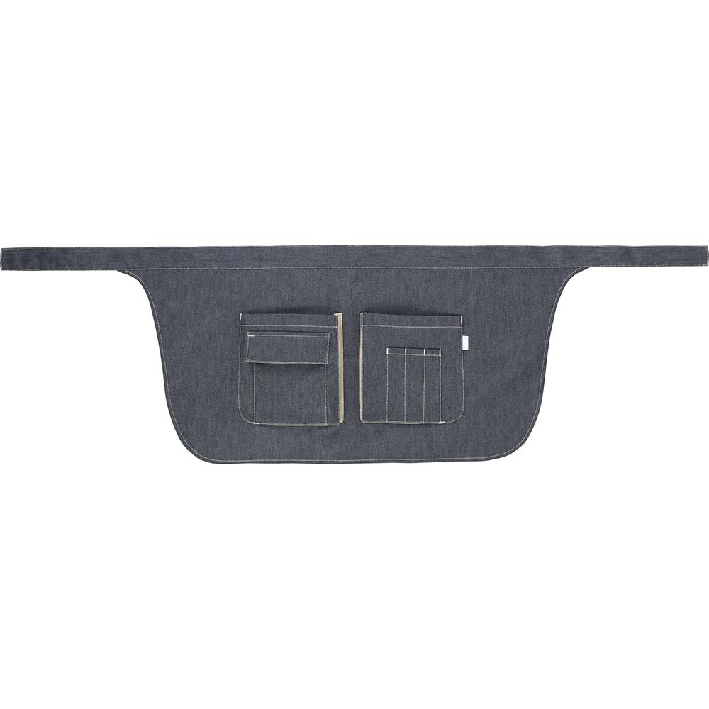 Geformter Bund | Bindeband | Aufgesetzte Tasche mit Zwickel und darüberliegende aufgesetzte Tasche mit 2 Stiftfächern und 1 Fach für Telefon oder TabletKurze Schürze mit vielen Taschen, ideal für Küchen- und Servierpersonal, da sie eine optimaleAufbewahrung der Arbeitsutensilien ermöglicht. Sie verfügt über Fächer für Stifte und Flaschenöffner,Faltentaschen für Bestellhefte und Taschen mit Klappe für Telefon oder Ihr Tablet für die Bestellaufnahme.Tragen Sie sie mutig seitlich an der Hüfte oder herkömmlich vorne, um während des Servierens alleUtensilien immer griffbereit zu haben. Wählen Sie zwischen dem Basismodell ganz in Schwarz oder derBistro-Variante aus Denimblau und Sandbeige. Höhe 38 cm.