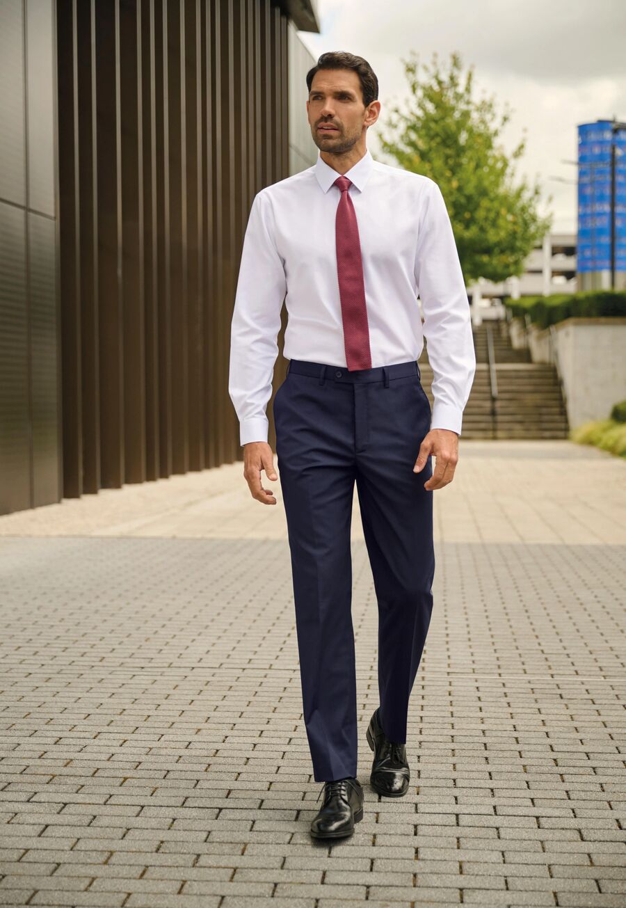 Das fein gewebte, strapazierfähige Material sorgt für eine angenehme Haptik und optimale Bewegungsfreiheit. Die Hose bleibt auch bei häufigem Tragen formstabil und knitterarm – ideal für lange Arbeitstage oder Reisen. Präzise gesetzte Nähte, klassische Bügelfalten und eine modern-zeitlose Linie machen die Avalino Hose zu einem unverzichtbaren Bestandteil jeder Business-Garderobe.